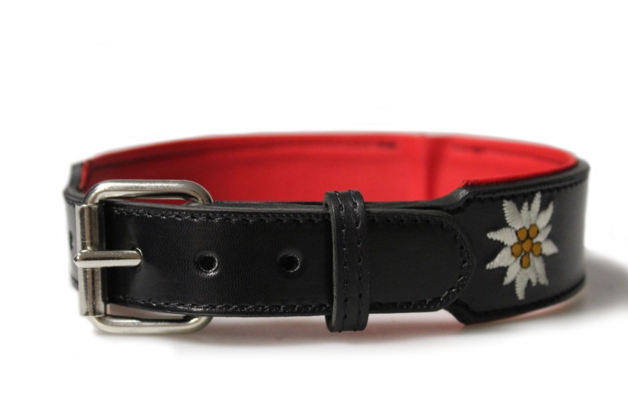 Traditionelles Hundehalsband verstellbar - verschiedene Längen bestickt mit Edelweiß und Adler Motiv Made in our Saddlery - Southtyrol - ITALY