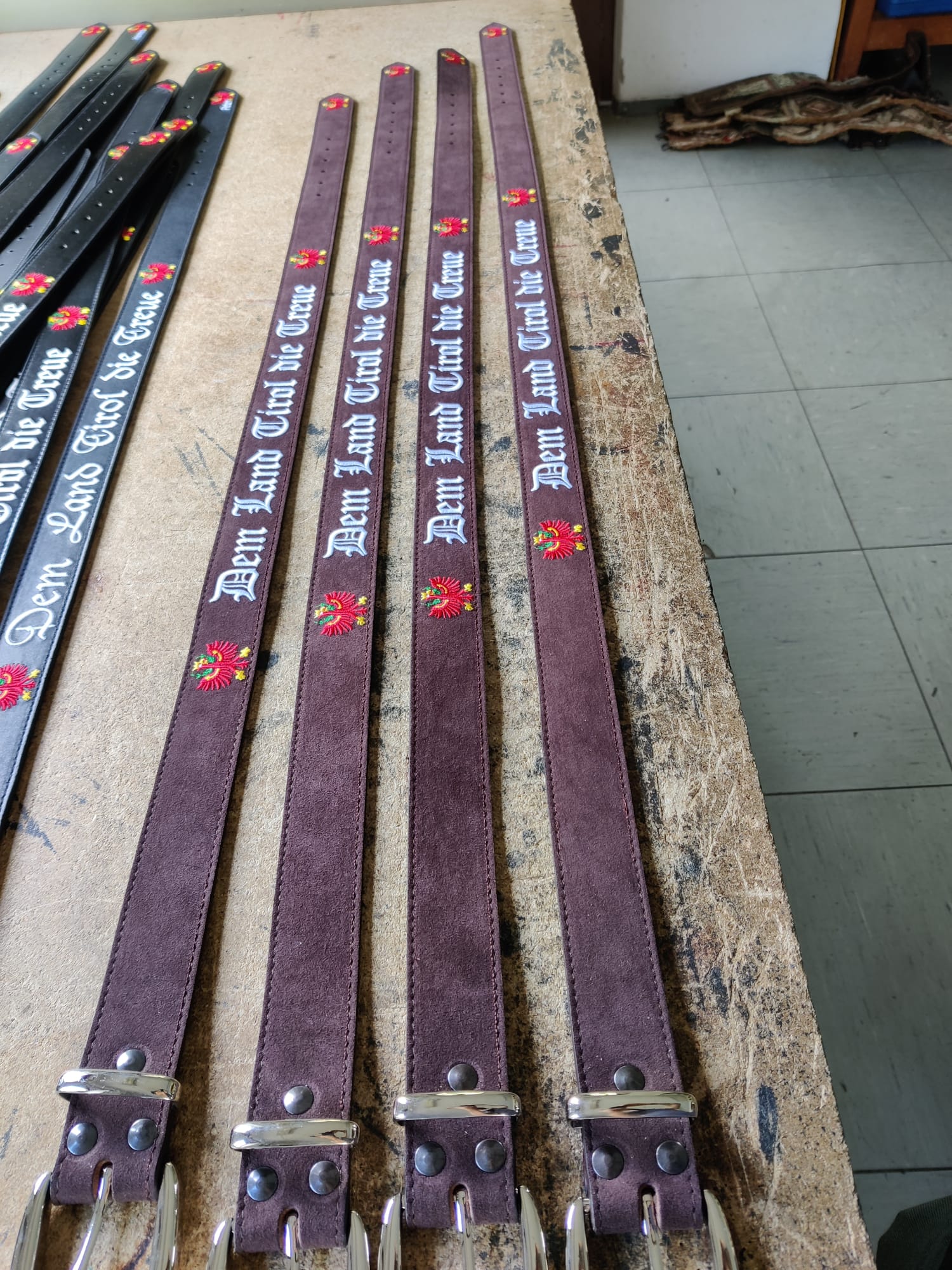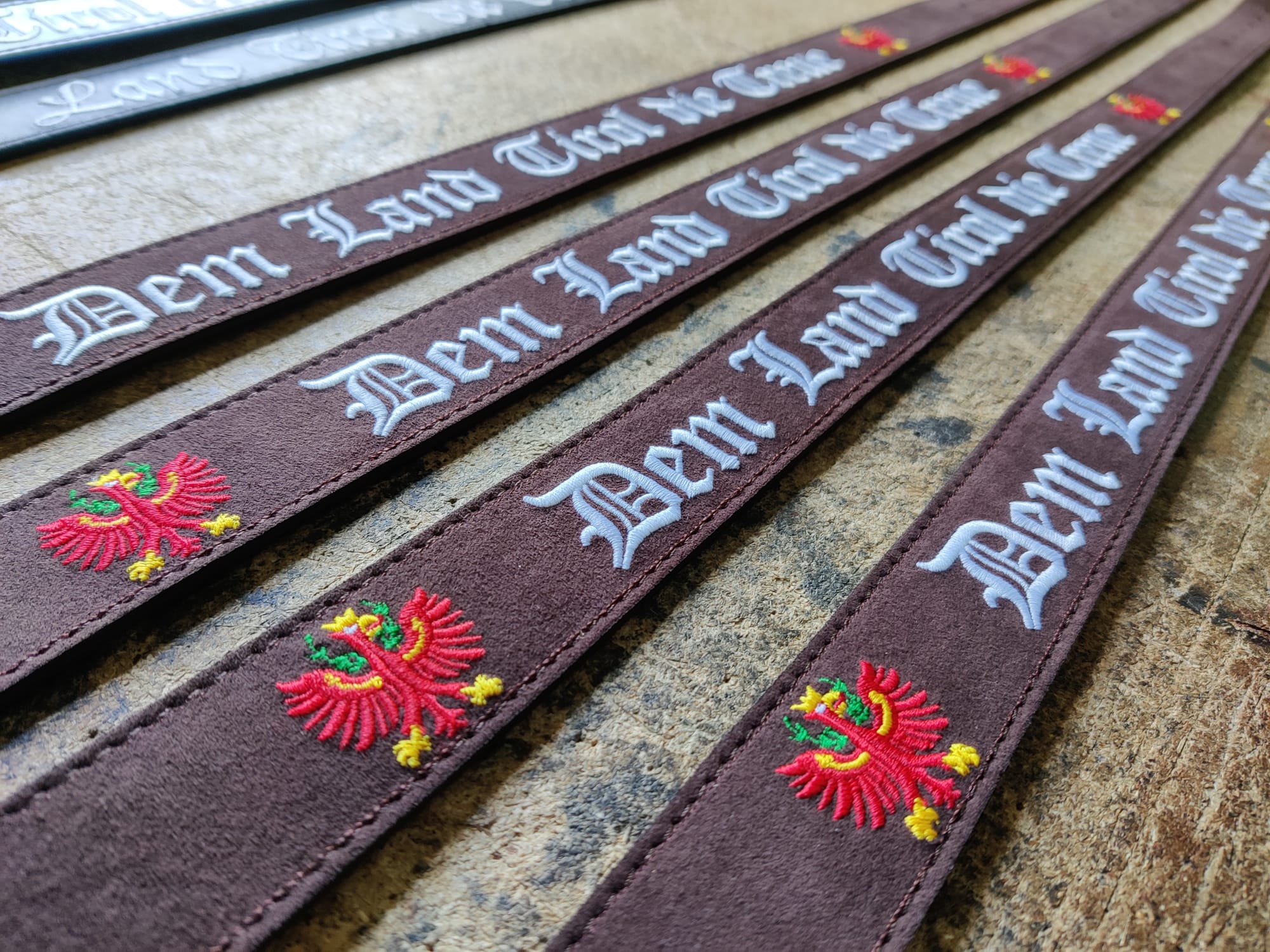 Alcantara Hosengürtel mit bestickten Seidenfaden. Made in Southtyrol